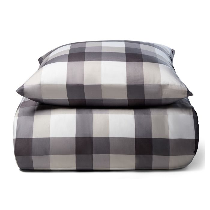 Bambus dobbelt sengetøj – 100% Naturligt bambus – 200×220 cm – Store grå tern – Satinvævet dobbelt sengesæt